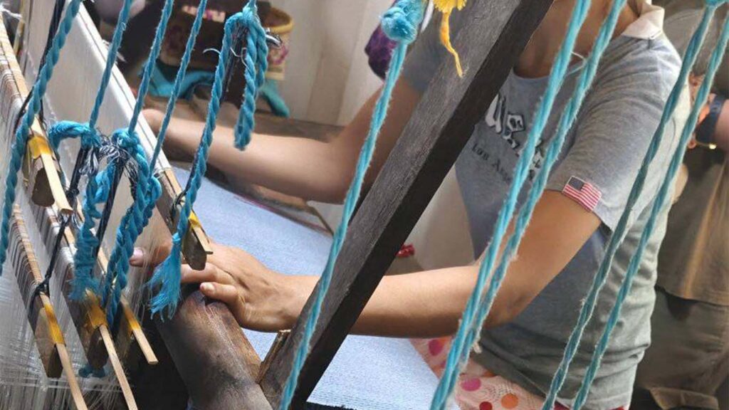 The exhibit highlights the symbolic, spiritual, and communal roles of weaving in local textile traditions, noting the shared aesthetics, materials, and tools found across regions.